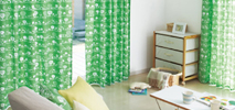 窓装飾の中で最も多く使用され、親しまれているのがカーテンです。カーテンの最大の魅力は、さまざまなデザイン・カラー・素材があることです。また、採光・通風などの機能性や簡単に開閉できるという操作性に優れたカーテンもあります。